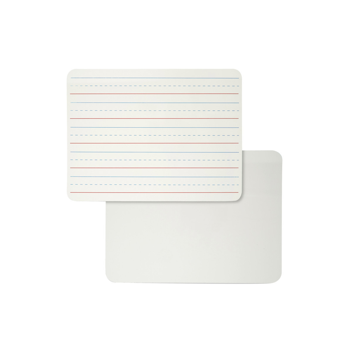 This versatile 9" x 12" dual-sided dry erase lap board is perfect for a wide range of classroom activities. One side features pre-printed lines ideal for practicing handwriting, penmanship, and sentence structure, while the blank side is great for games, math lessons, drawing, or quick notes. Made with a durable masonite backing and a bright white melamine surface, this board offers long-lasting use and excellent visibility. Designed to work with all dry erase markers, it’s also an eco-friendly alternative to paper—just write, wipe, and reuse. Whether you're a student or teacher, this board is a practical tool for any learning environment.