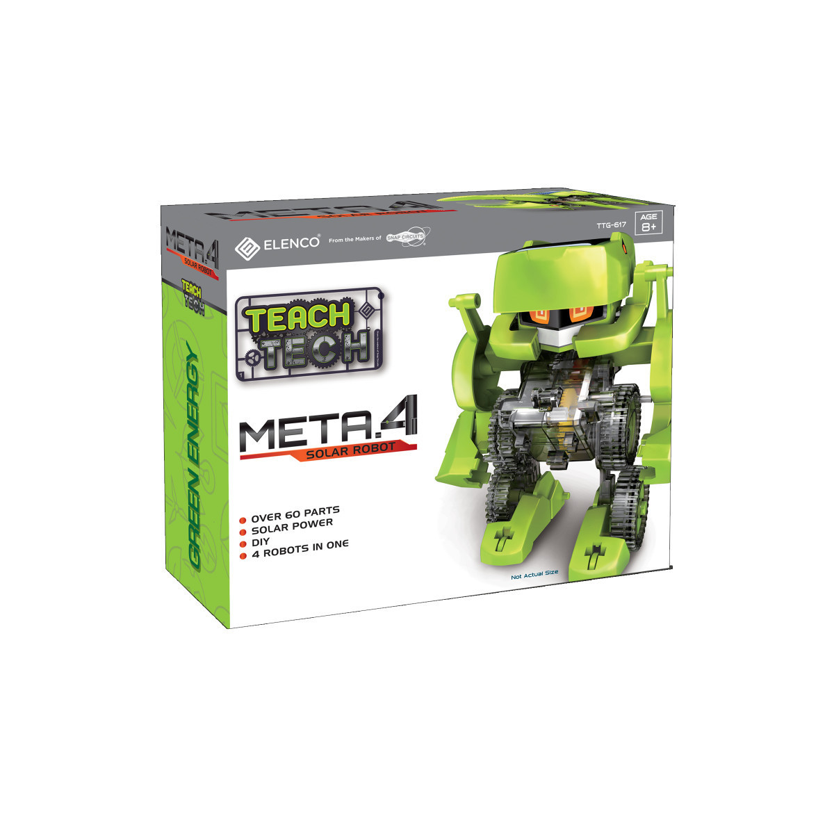 Meta.4 introduces Robotics to younger children with larger, easier to handle parts. Build and rebuild 4 different models, one at a time. Your Meta.4 is powered by clean, green, sunlight so no batteries are ever needed. Builds can be easily dissembled and reassembled to make any one of the 4 models. Grade 3-12