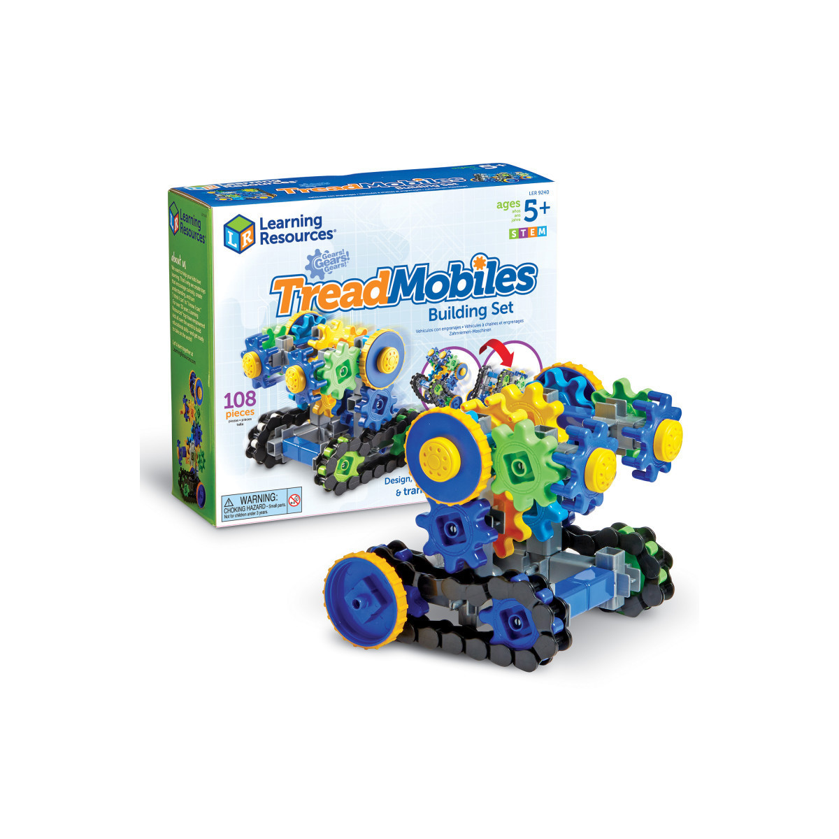 Gears, meet treads! Kids can design and build the STEM creations of their dreams with Gears! Gears! Gears! Treadmobiles from Learning Resources. This 108-piece STEM building set inspired by our best-selling Gears! Gears! Gears! series, this build-it-yourself toy includes all-new special tread components for designing and building robots, cars, and machines that move like tanks and conveyor belts. Kids can follow along with the included STEM Activity Guide, or use their imaginations to devise open-ended builds of their own—with 108 pieces, they have everything they need to make their creations come to life! Every time they build a new Treadmobile, kids also boost their early engineering, critical thinking, and other essential STEM skills. All pieces included in Gears! Gears! Gears! Treadmobiles work with all other Gears! building sets, so the possibilities are as fun as they are limitless! This set is also perfect for school STEM club and other group play! Grade K+