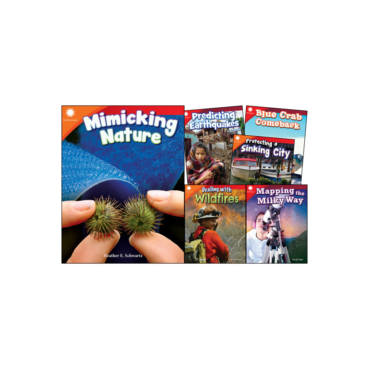 How are engineers working to save Venice from sinking? How are earthquakes predicted? How do wildfires start? Find the answers to these questions and more with this STEAM book set devoted to the natural world! Created in collaboration with the Smithsonian Institution, ignite a curiosity about STEAM topics through real-world examples. This set features hands-on STEAM challenges that are perfect for makerspaces and that guide students step-by-step through the engineering design process. Make STEAM career connections with career advice from actual Smithsonian employees working in STEAM fields. Take a virtual tour of the Smithsonian with these titles: Blue Crab Comeback; Dealing with Wildfires; Mapping the Milky Way; Mimicking Nature; Predicting Earthquakes; Protecting a Sinking City. Grade 1-5