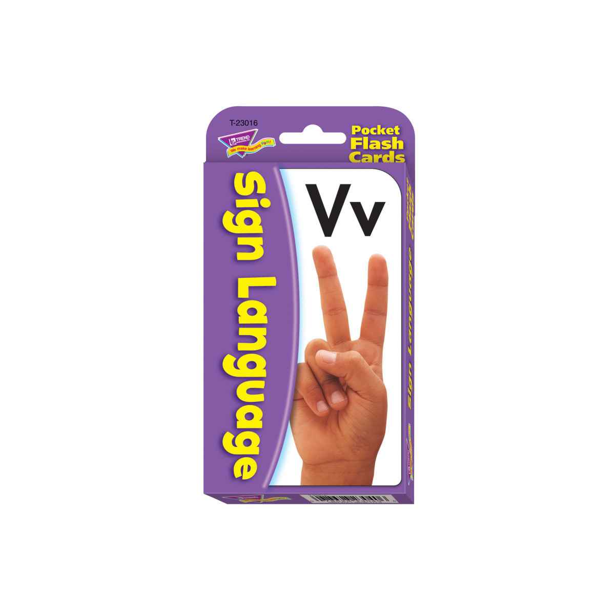 Flashy by design! Build student confidence and skills using fun-filled flash cards. This illustrated pack, complete with activities, teaches 26 basic signs and the photographic manual alphabet. Watch students enjoy learning and build skills on their own or with friends... at school, home, or on the go! Durable, no-see-through cards with quick-sorting, rounded corners. 56 two-sided cards, 3.125" x 5.25". For ages 7 and up. Grade 1-12