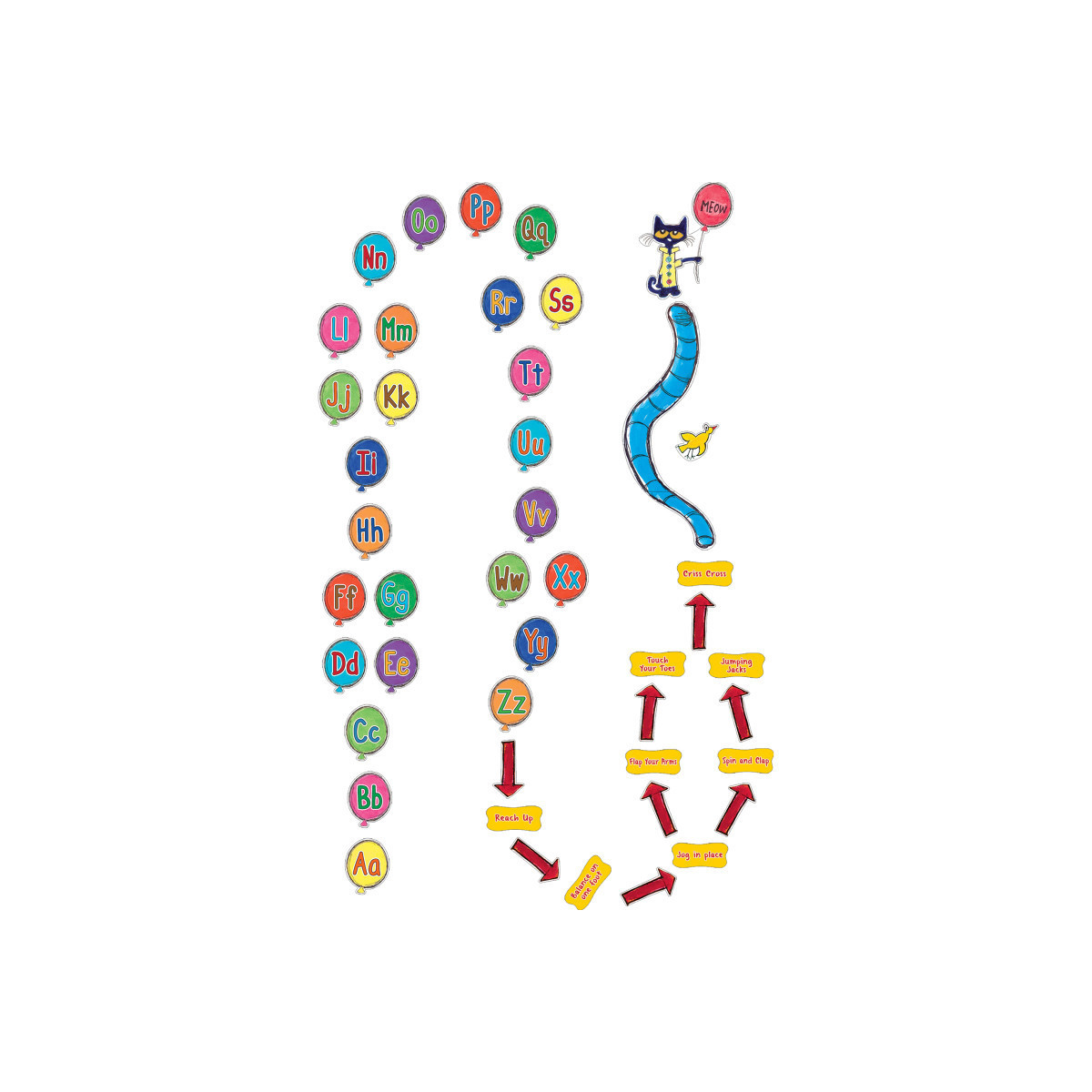 Sensory paths give students an outlet to channel some of their excess energy by directing them down a set route (or path). These paths give students the opportunity to spin, tiptoe, leap, crawl, hop, squat, stretch, or dance their way from one point to another. A sensory path can be short or it can stretch the length of a hallway, but either way the objectives should be the same—improve focus, prevent disruptive behaviors, develop motor skills, and encourage smiles! Whether a student needs to calm down or energize, refocus during a transition, or self-soothe after a stressful challenge, sensory paths are a fun and engaging way for children to take a "brain break" and work through some of their wiggles. The smooth, durable surface of each piece is easy to wipe down or spray with disinfectant to help prevent the spread of germs. The pieces attach firmly to smooth, untextured floors. Pete the Cat measures 13.1" x 11". 44 pieces total. Grade PK+