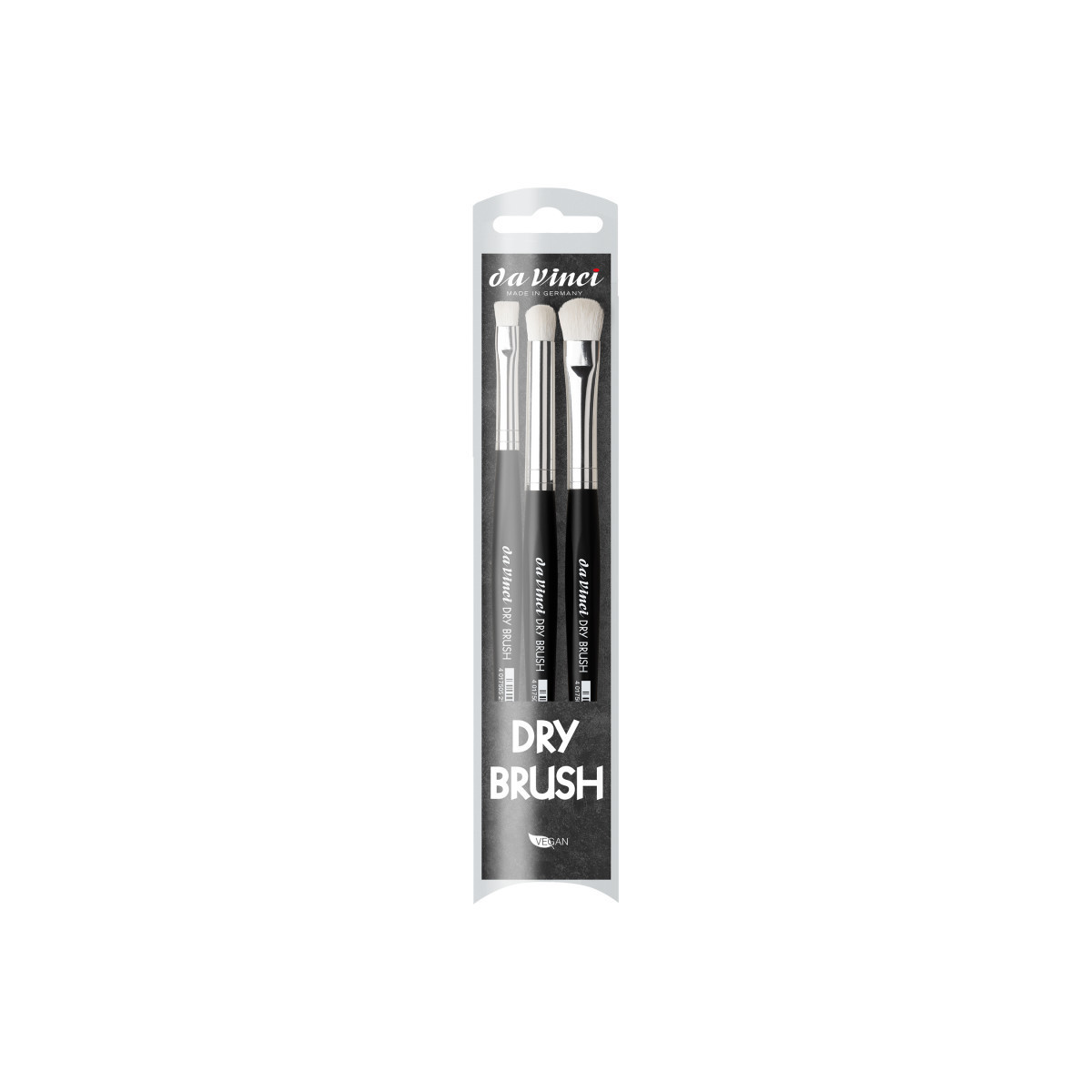 Miniature painters use the so-called drybrush-technique to mimic rust, dirt and to create weathering effects. Also the grain of wood or the look of steel or fabric are accentuated. These versions are made of white synthetic fibers, that imitate the natural goat hair, and have black matte hexagonal handles. The advantage in comparison to traditional natural hair brushes is the more durable fiber, not breaking even after intensive use and assuring a long brush life. This Miniature Painting Dry Brush Set contains one piece each of Series 140 (Flat) Size 6, Series 143 (Round) Size 12 and Series 145 (Filbert) Size 10. Grade VPK+