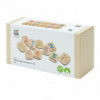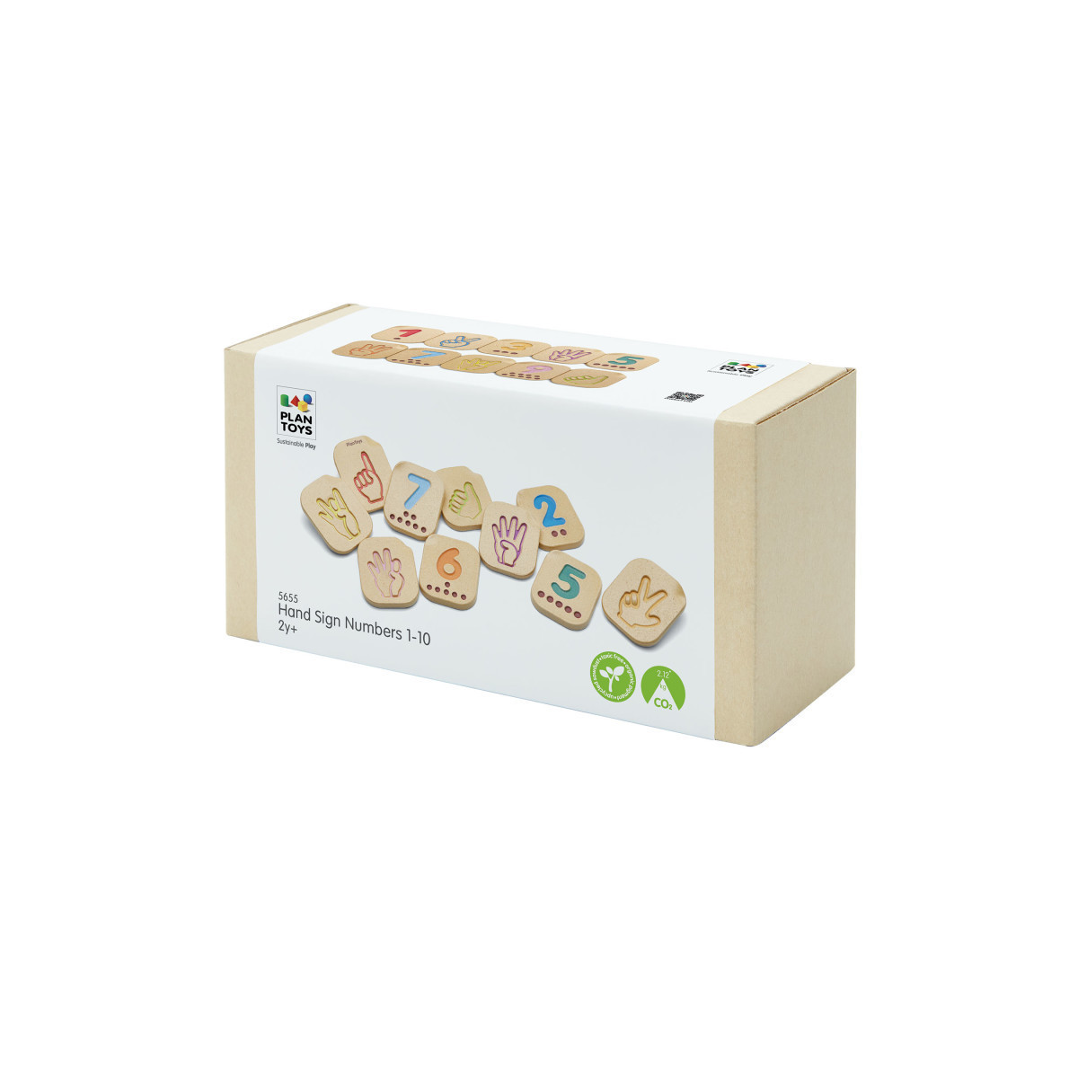 Explore numbers and sign language with the PlanToys Wooden Hand Sign Numbers 1-10 Tiles. This educational set encourages children to learn counting, sequencing, and ordering by tracing tactile number tiles with their fingers, improving fine motor skills and hand-eye coordination. Beyond basic numeracy, the tiles also introduce foundational math concepts like addition, subtraction, and multiplication in a fun, hands-on way. Each tile features a hand sign representing numbers 1 through 10, supporting early sign language skills alongside math learning. Sustainably crafted in Thailand from chemical-free rubberwood, organic pigments, and water-based dyes, this set combines eco-friendly design with enriching educational play. Grade VPK+
