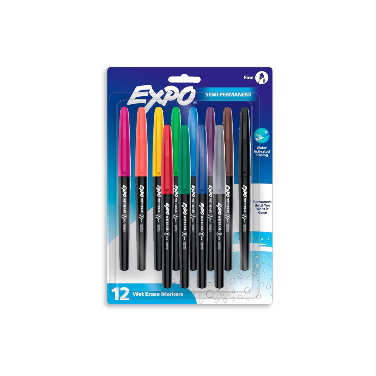 Label, plan, and organize with ease with EXPO Wet Erase Markers. Depend on EXPO wet erase markers for writing or drawing on whiteboards, hard plastic, laminated sheets, and other nonporous surfaces. These EXPO markers feature ink that easily wipes off with a damp cloth. Available in a variety of vibrant colors, the fine-tip markers leave fine detailed lines even in small spaces. Grade 6+
