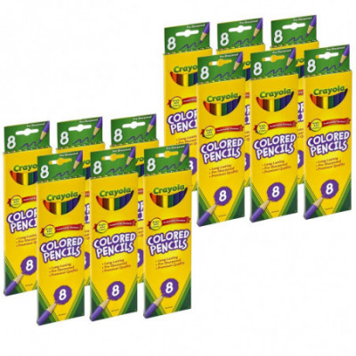 Colored pencils are an indispensable tool at home and in the classroom, ideal for creating and coloring maps, completing art or science projects, and making signs and labels. Crayola Colored Pencils have an easy-to-grip design for better control and are made with a thick, soft core, so they won't break easily under pressure. Kids will love to use these durable, vividly colored pencils. Small enough to fit in a book bag, this portable box holds a variety of colors. The smooth colors are perfect for color mixing and blending as well as for practicing more detailed techniques. Crayola Colored Pencils are created from reforested wood instead of wood from old-growth forests. For every tree used in the manufacturing of Crayola Colored Pencils, a new tree is planted. Each pack includes 24 Crayola Colored Pencils. Sold as a case of 36 packs for a total of 864 colored pencils.