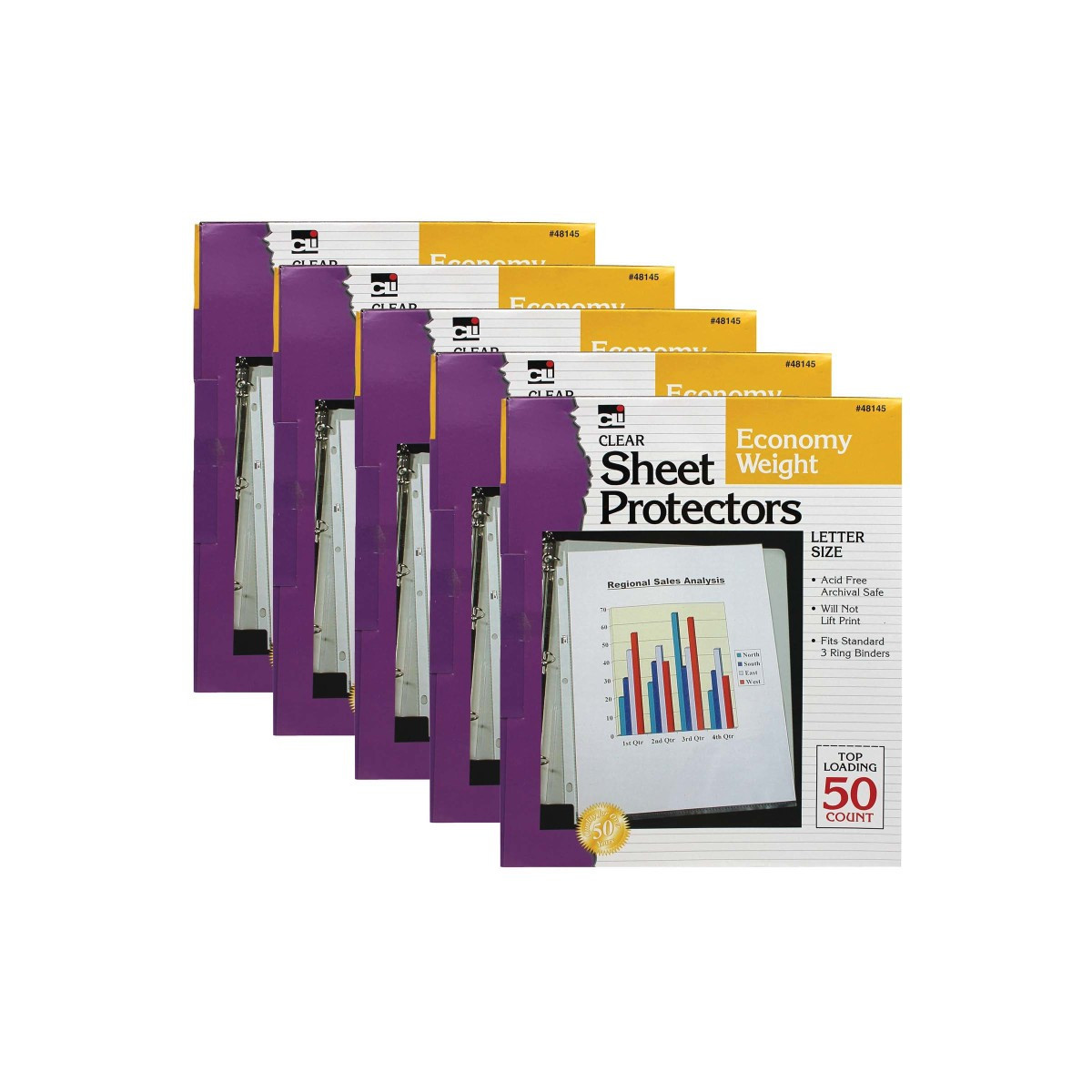 Top loading polypropylene sheet protectors provide archival quality protection for permanent storage of your materials. No sheet punching is necessary so documents remain in their original condition. Will not lift print. Letter size. Each box includes 50 sheet protectors. Sold as 5 boxes for a total of 250 sheet protectors.
